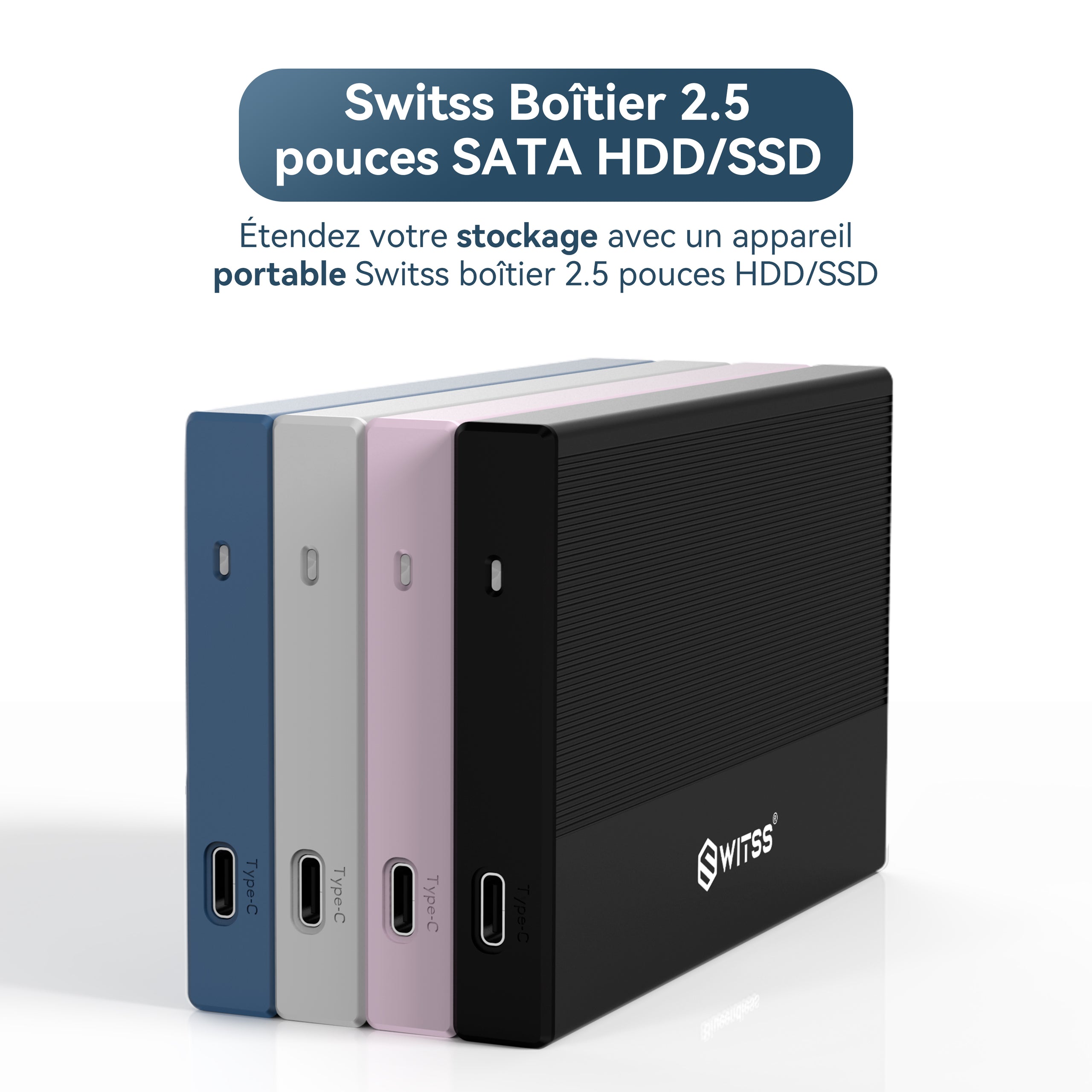 * Remarque importante: le boîtier externe Switss® 2,5” HDD/SSD ne contient PAS de disque dur ni de carte SSD.